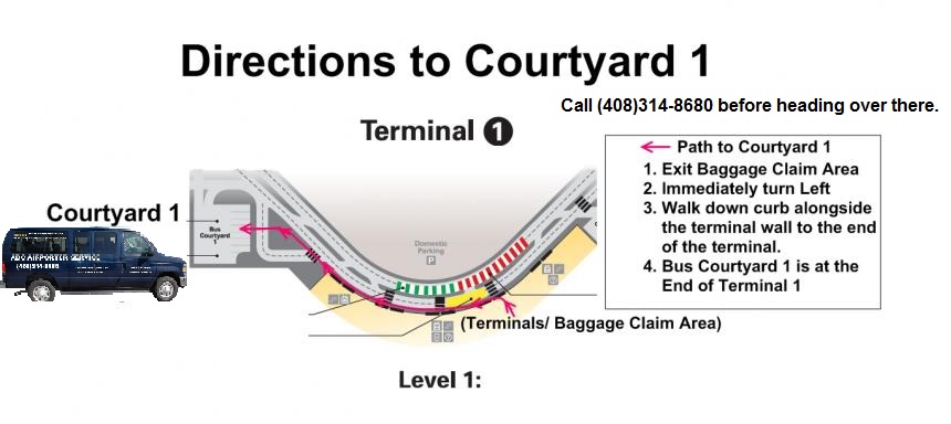 out to the curbside of the arrivals level. Walk towards Door 1 which will be to your LEFT and you'll come across a